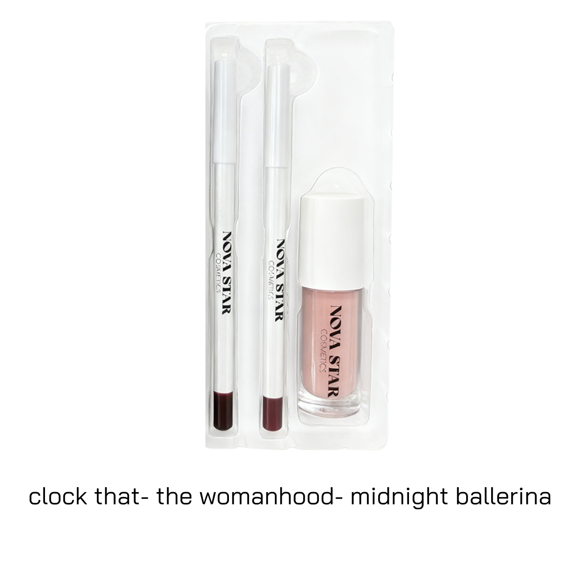 The OG Baddie Lip Kit is the iconic trio that put Nova Star Cosmetics on the map! This legendary combo features Clock That lip liner for precision, Womanhood lipstick for that bold statement, and Midnight Ballerina Gloss to seal the deal with shine. Layer them together and you've got the ultimate It Girl moment—the exact look our founder created to turn heads. A stunner's essential.